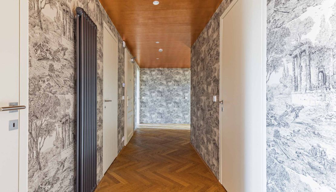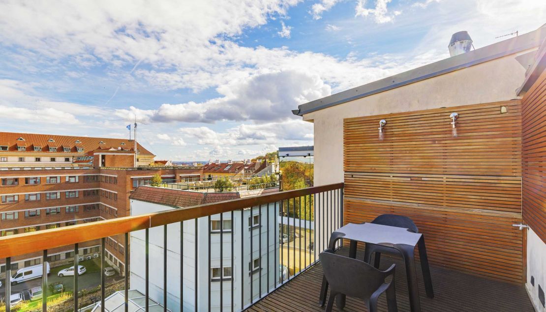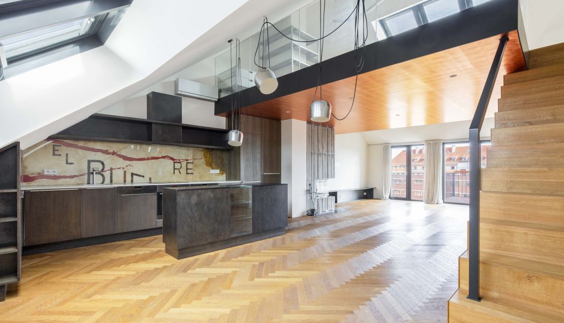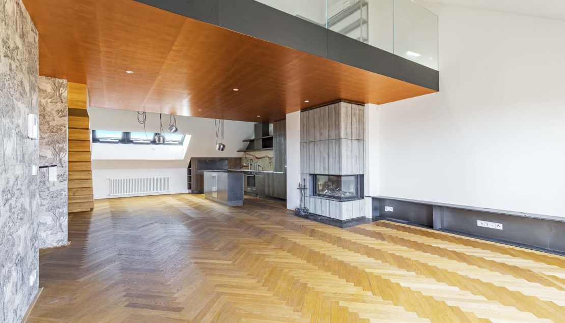 Byt je plně klimatizovaný, střešní okna jsou elektronicky ovládaná a k bytu náleží také terasa (9,5 m2). Interiér bytu dotvářejí kvalitní dřevěné parkety a vkusně zvolené tapety, které celému prostoru dodávají elegantní atmosféru. O bezpečnost se stará alarmový systém.