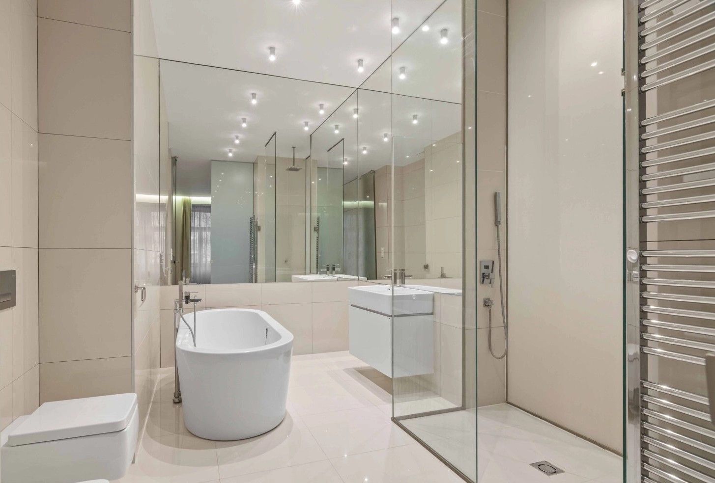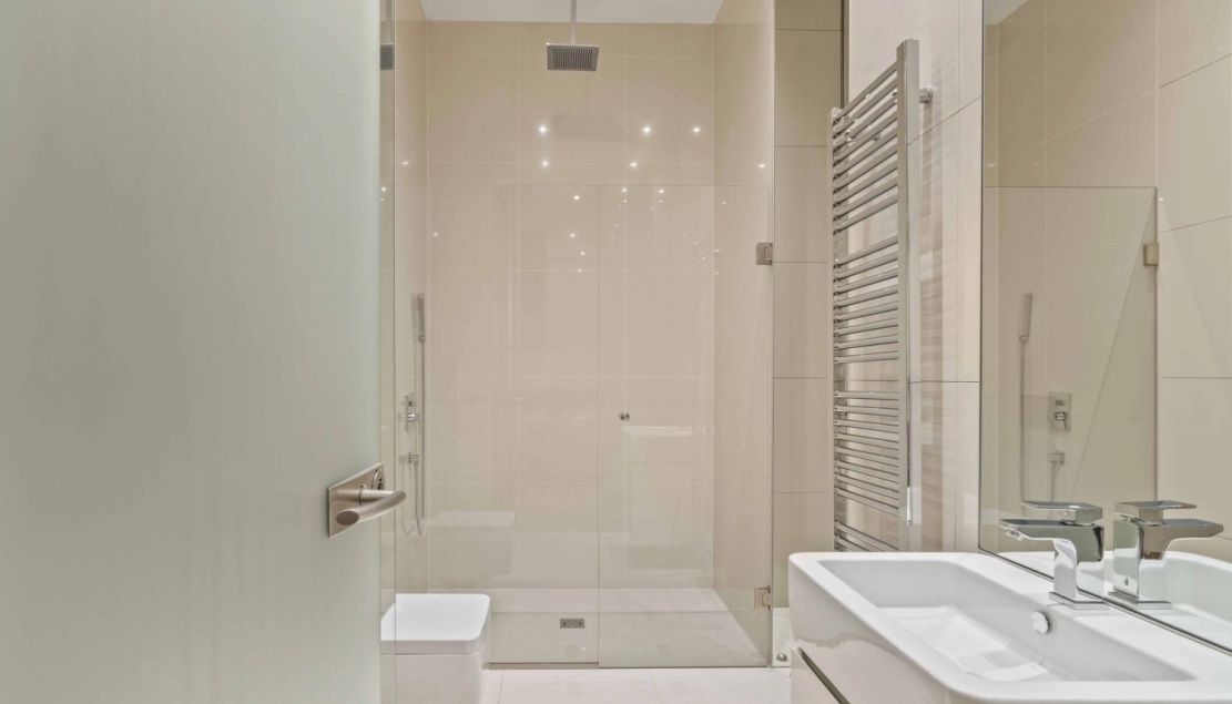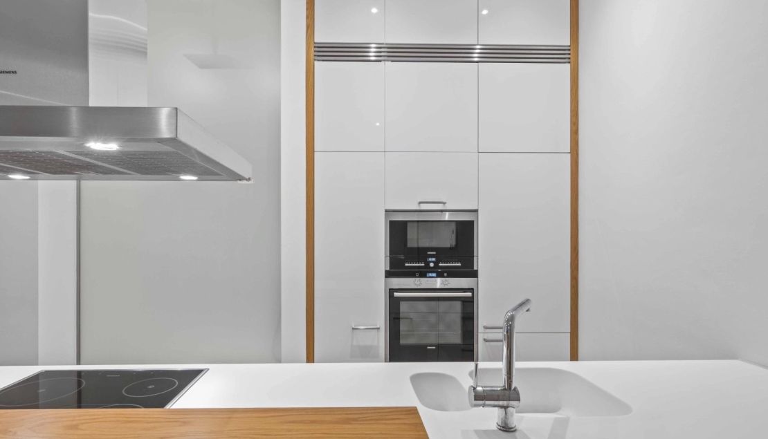 V bytě se nacházejí dvě koupelny – jedna s vanou a toaletou, druhá se sprchovým koutem a toaletou. Moderní kuchyňský kout je plně vybaven sklokeramickou varnou deskou, troubou, lednicí s mrazákem a myčkou nádobí. Součástí vybavení je také pračka a sušička. Byt nabízí vestavěné skříně, kvalitní dřevěné podlahy, bezpečnostní vstupní dveře, integrované stropní osvětlení, alarm s možností napojení na PCO a videotelefon. Interiér bytu byl navržen architektonickým studiem Design by Donlic.