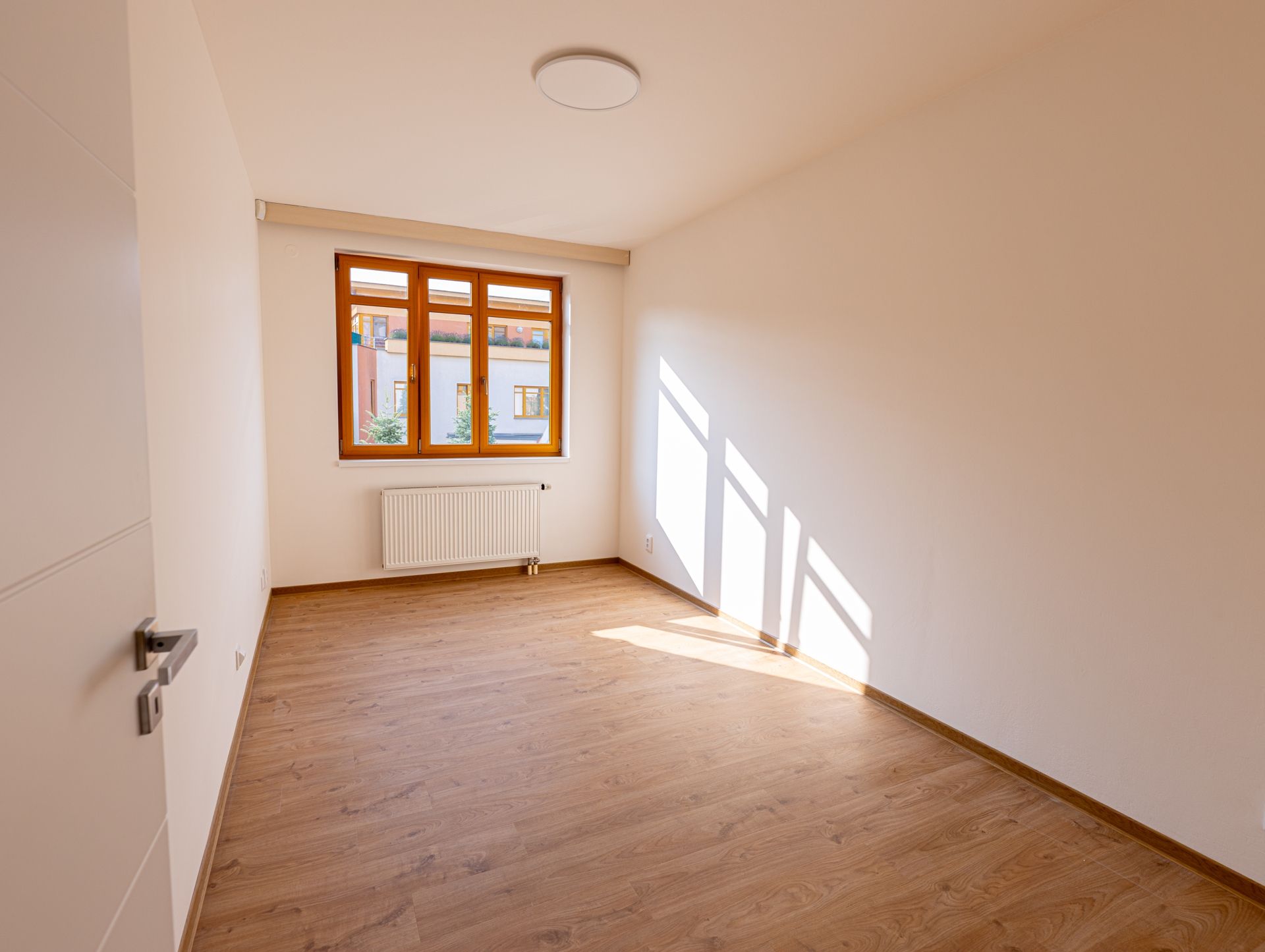 Byt je nezařízený a k jeho vybavení patří vestavěné kuchyňské spotřebiče a vestavěná skříň.