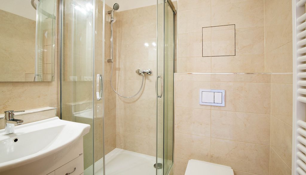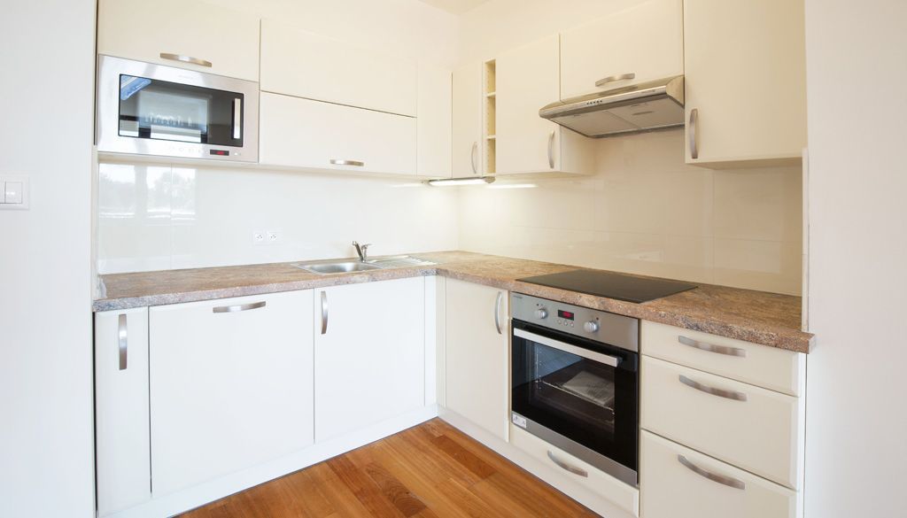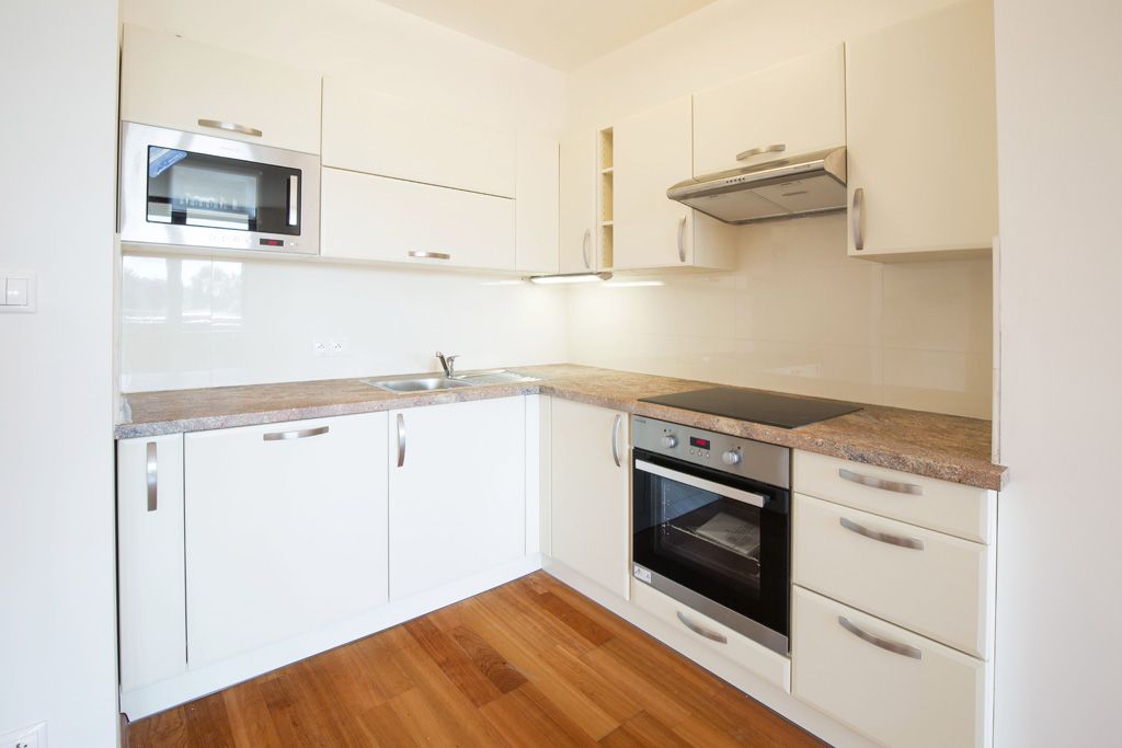 Byt disponuje moderním kuchyňským koutem vybaveným sporákem, troubou, myčkou nádobí a mikrovlnnou troubou. K dispozici jsou dvě koupelny - jedna se sprchovým koutem a toaletou, druhá s vanou.