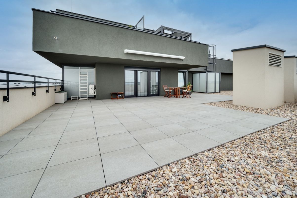 Tento světlý zařízený byt 1+kk o výměře 39 m2, situovaný ve 12. patře domu s výtahem disponuje vzdušným obývacím pokojem (29 m2) s designovým kuchyňským koutem, oddělenou ložnicovou zónou a vstupem na jedinečnou střešní terasu o ploše 173 m2. K bytu dále náleží moderní koupelna a vstupní hala.