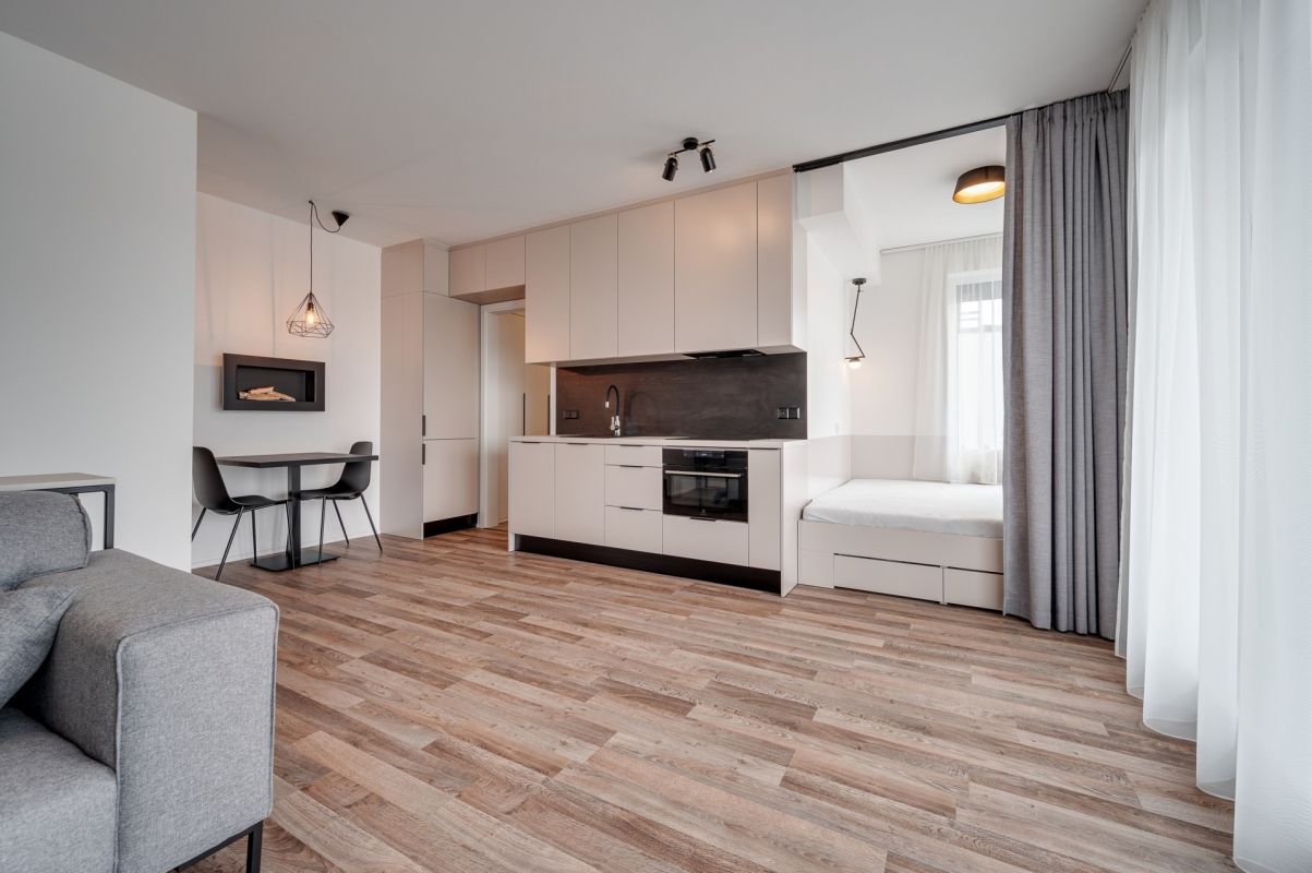 Nabízíme k pronájmu moderně zařízený jednopokojový byt o velikosti 39 m2 s impozantní střešní terasou 173 m2, který je součástí bytového projektu Tulipa Třebešín v poklidné lokalitě Prahy 3 - Strašnice. Na atraktivitě lokalita získává rovněž díky blízkosti Malešického parku.