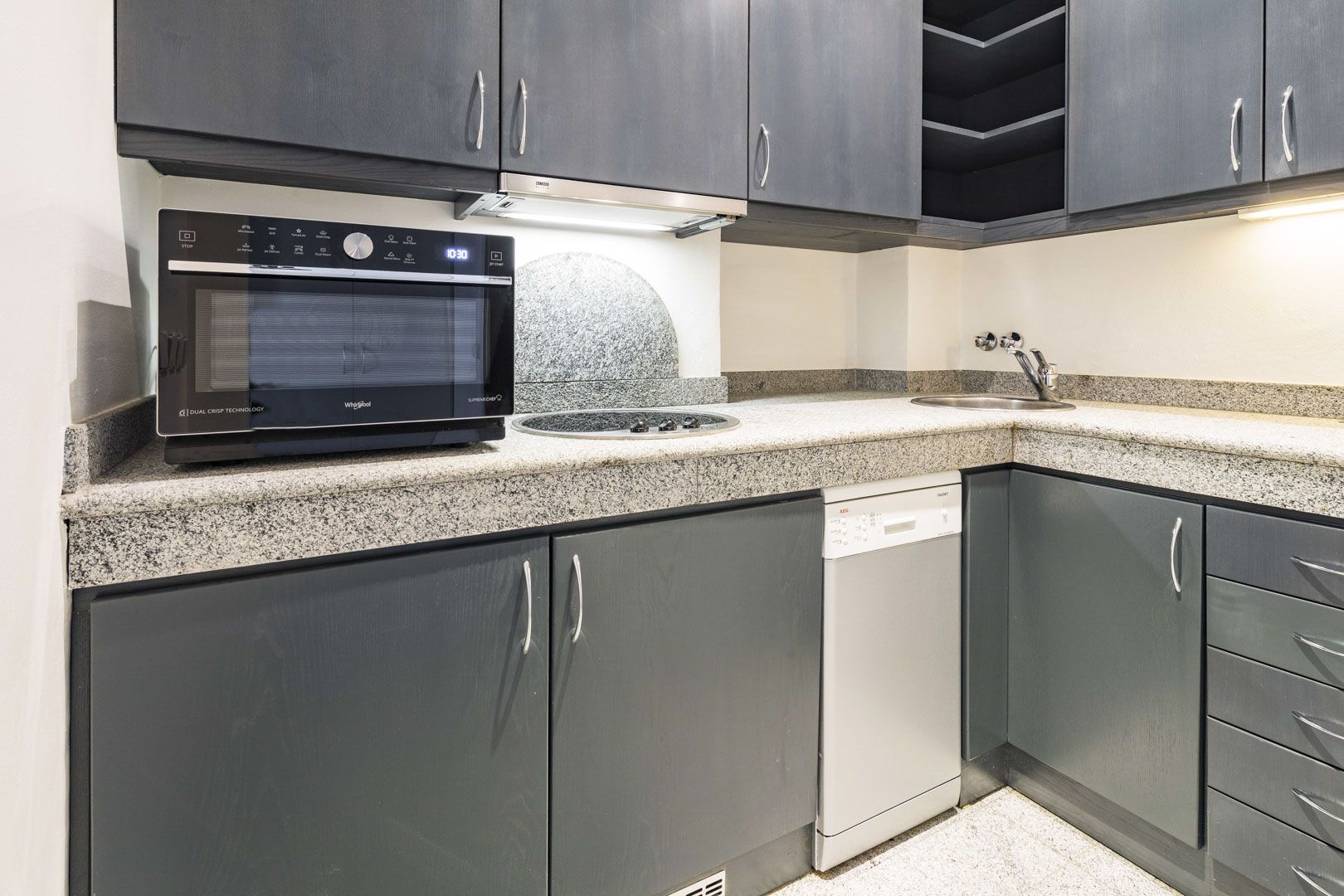 Kuchyňský kout je vybaven sklokeramickou deskou, troubou, lednicí, mrazákem, mikrovlnnou troubou a myčkou nádobí. Dvě koupelny mají vanu, sprchu, bidet a toaletu. Byt je zařízen v italském stylu, má nádherné malované stropy, orientální koberce, starožitný i moderní nábytek a kamennou podlahu. Součástí je satelitové a internetové připojení a v celé budově se nachází výtah.