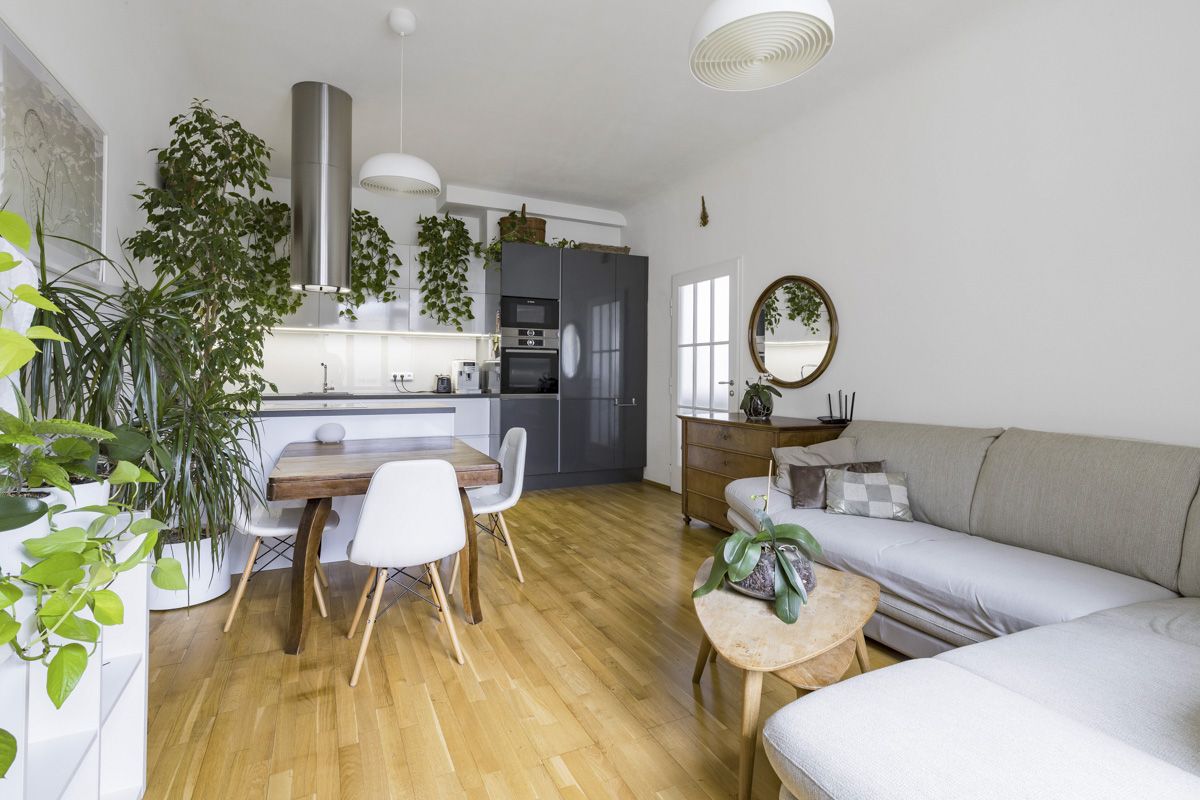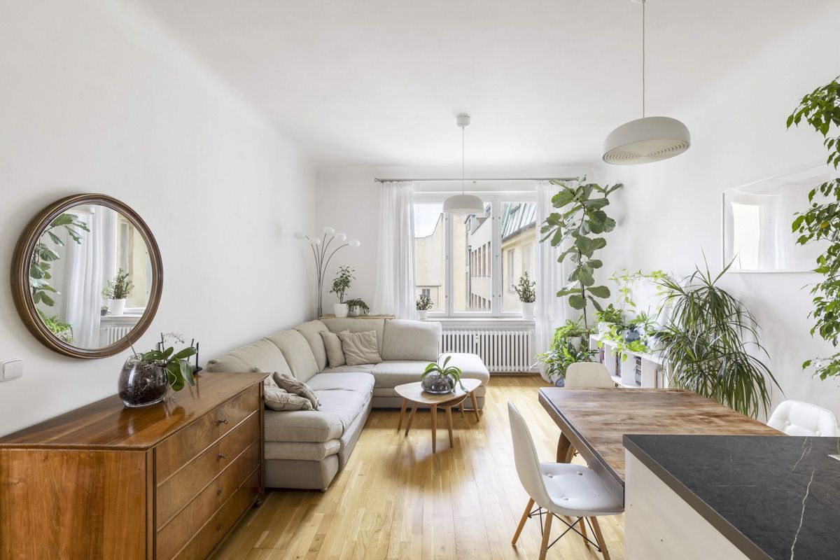 Tento byt nabízí k užívání vstupní chodbu, obývací pokoj s kuchyňským koutem (sklokeramická deska, trouba, mikrovlnná trouba, lednice, mrazák, myčka nádobí), 2 ložnice, koupelnu (velký sprchový kout, toaleta), komoru a samostatnou toaletu. Z chodby je dále přístupný menší balkon. Společné prostory domu jsou kompletně zrekonstruovány a pečlivě udržovány. V bytě se nachází dřevěné plovoucí podlahy, původní rekonstruovaná okna a původní vnitřní dveře.