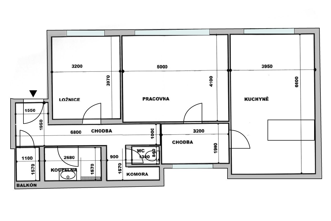 Světlý byt 3+kk ve třetím patře udržovaného činžovního domu s výtahem