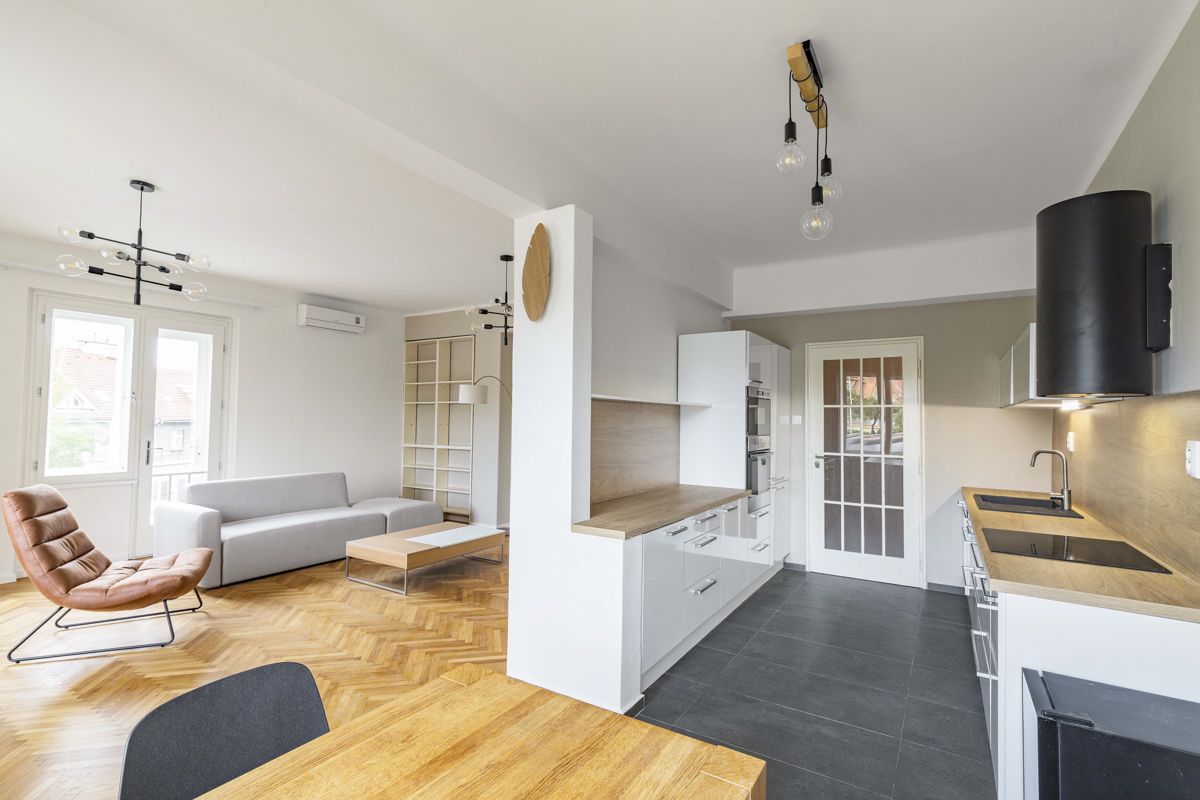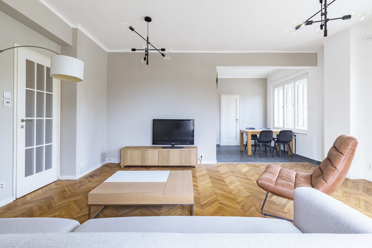 We offer a modernly furnished 2 bedroom apartment with an area of 96 sqm and two balconies, located on the 1st floor of the building. The property is located in the beautiful Prague 3 - Vinohrady district, which offers all civic amenities and good transport infrastructure.