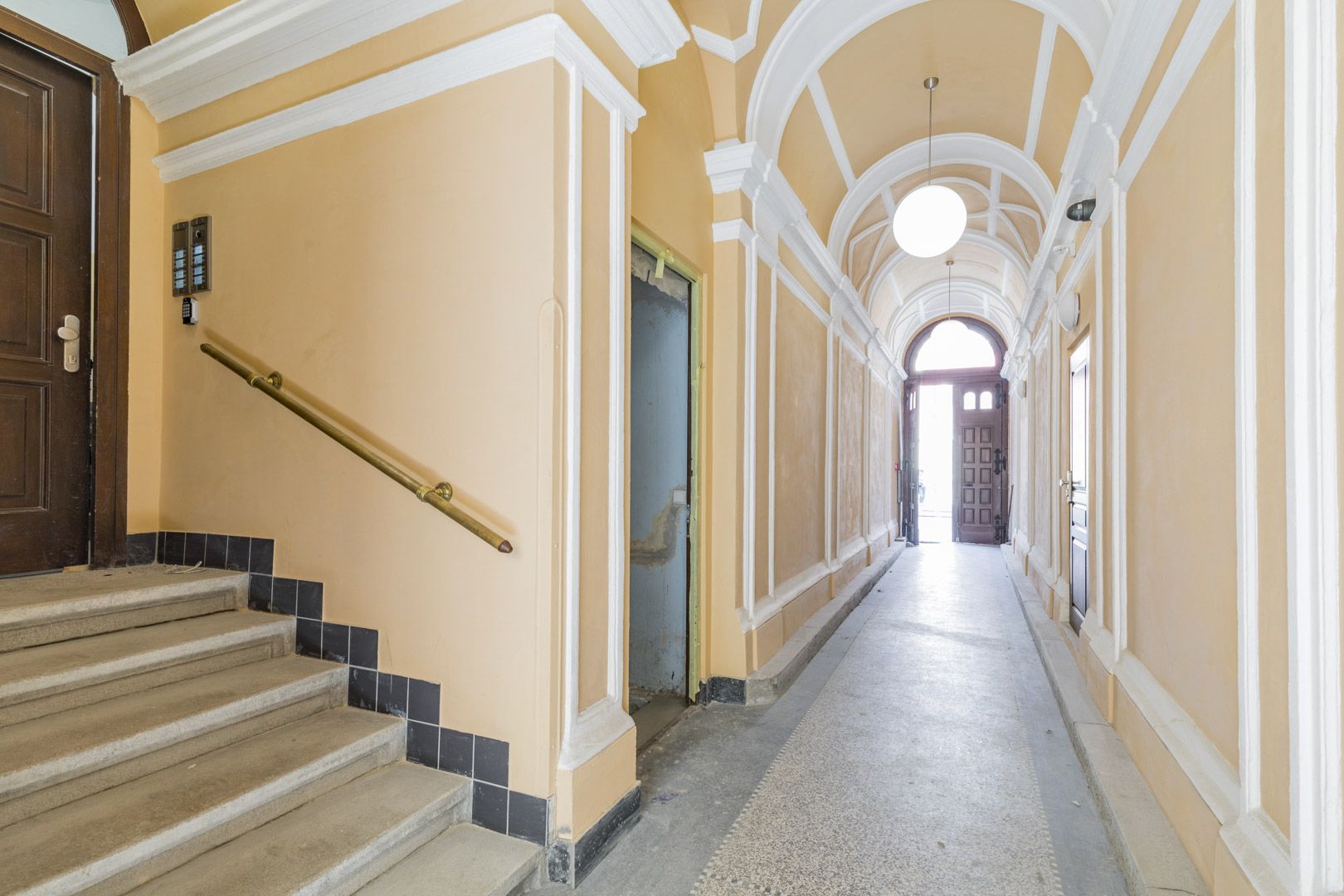 The renovated residential building is located in an attractive part of Prague 1 - Nove Mesto. The location of Nové Město is known for its unmistakable atmosphere, comfortable living in the center just a few steps from the metro station B and tram stop Namesti Republiky. From the Main Railway Station (10 min.) there is a direct connection to the Vaclav Havel Airport. There are local shops, florists and countless restaurants and cafes right on Na Porici Street. In the immediate vicinity there is also the Palladium.