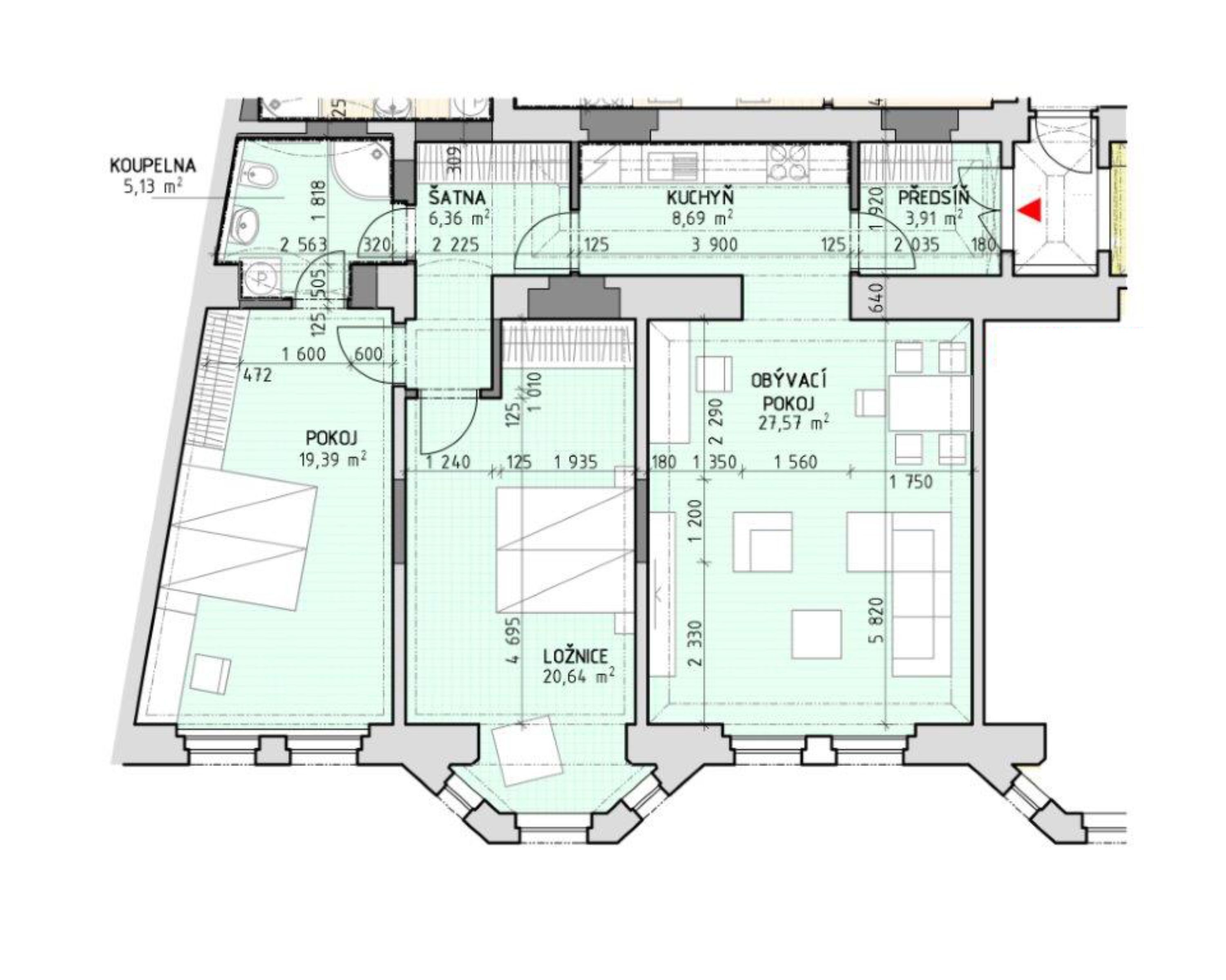 Spacious unfurnished 2-bedroom apartment in an attractive location in Prague 1 - Nove Mesto
