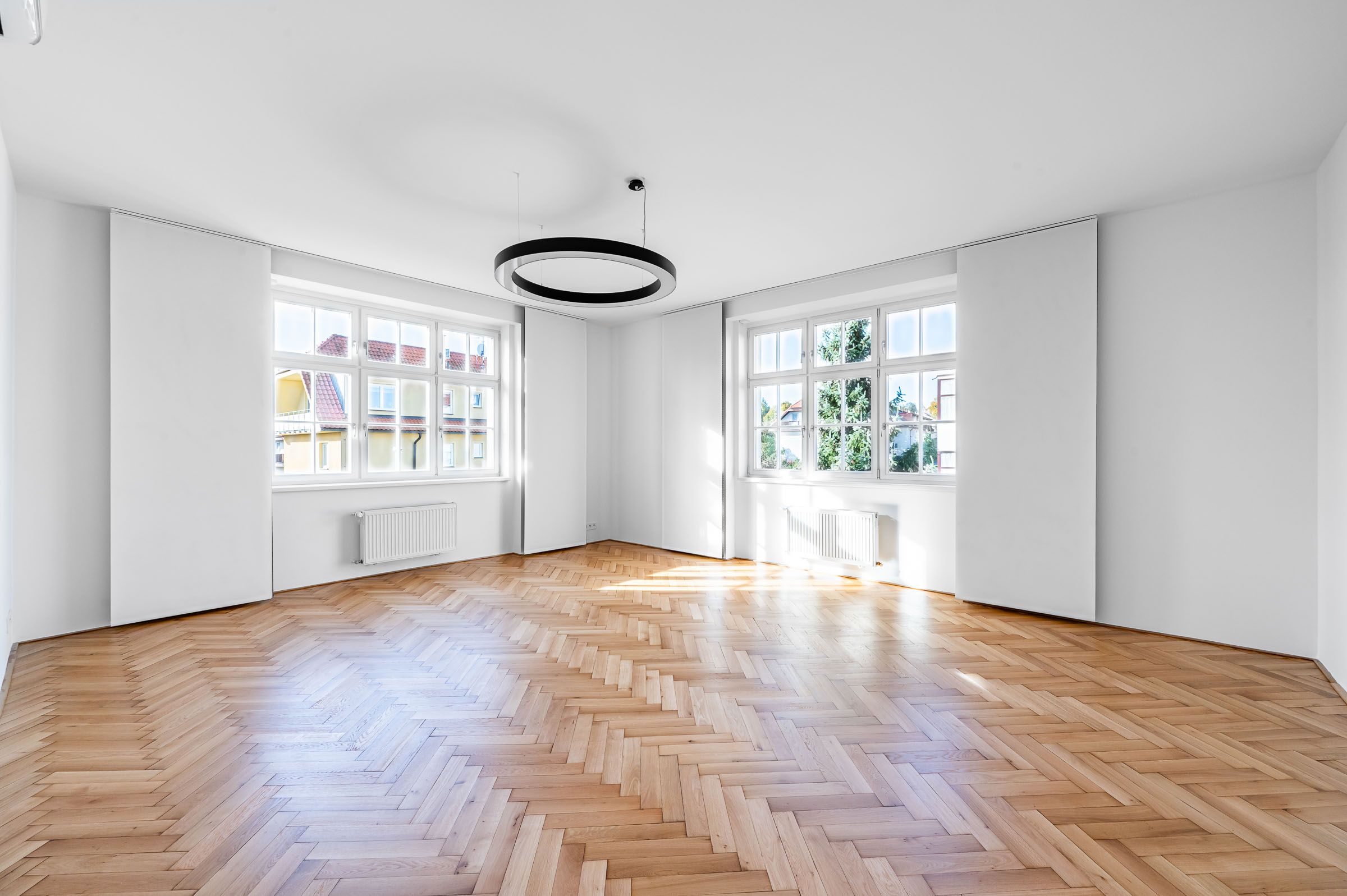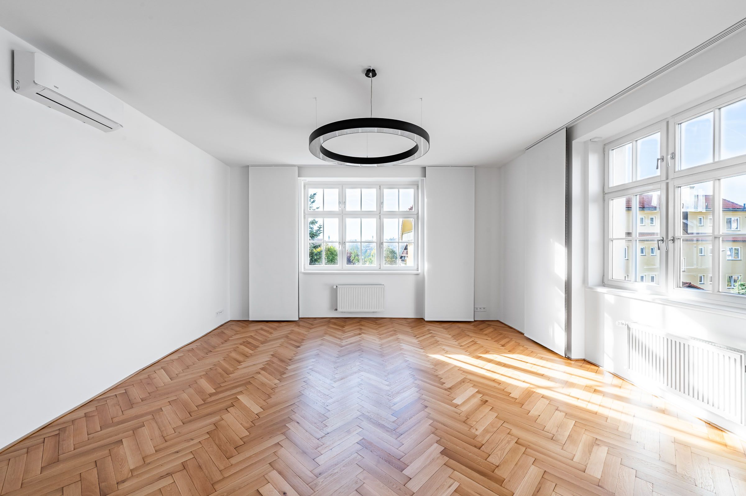 Luxusní částečně zařízený byt 3+1 o velikosti 137 m² s lodžií 3 m² a společnou zahradou ve dvoře domu, situovaný v 1. patře renovované vily rezidenci Hanspaulka v lokalitě Prahy 6 - Dejvice.