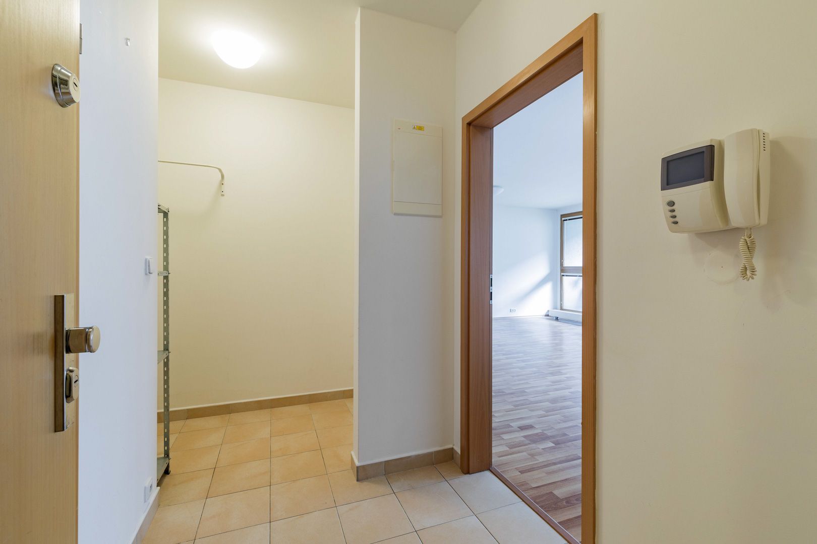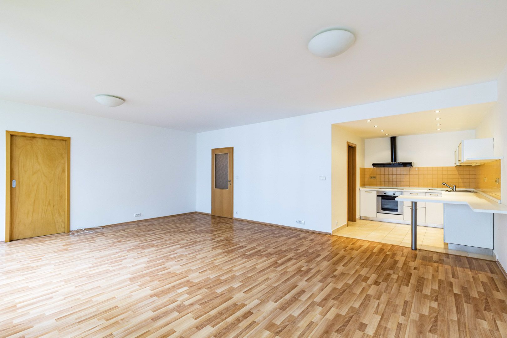 Tento světlý nezařízený byt 2+kk k pronájmu dispozičně nabízí vstupní chodbu, prostorný obývací pokoj se vstupem na balkon, plně vybaveným kuchyňským koutem (sporák, trouba, lednice, mrazák a myčka nádobí) včetně jídelního prostoru, ložnici, koupelnu disponující vanou a sprchovým koutem a komoru. K bytu náleží balkon orientovaný do klidného vnitrobloku. Součástí nájemného je sklep. Dvě parkovací stání za příplatek 1.500 Kč