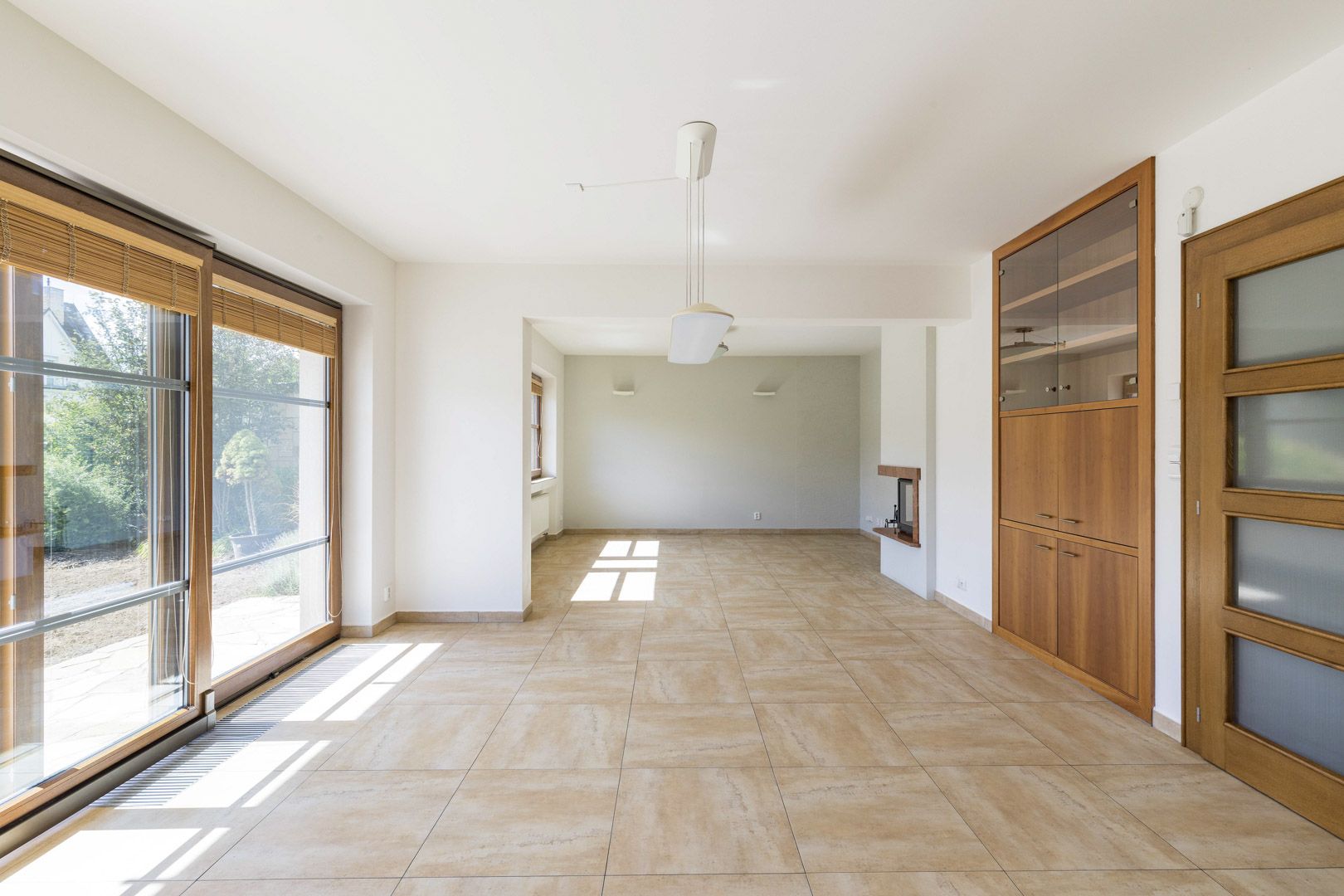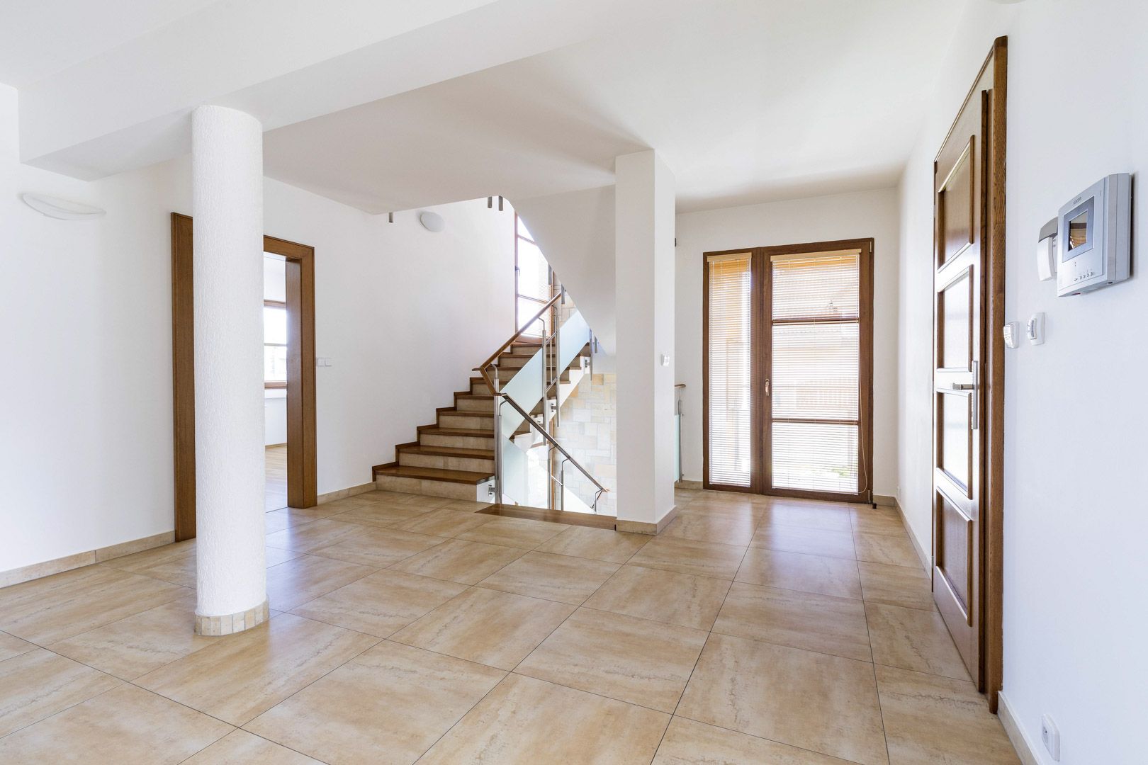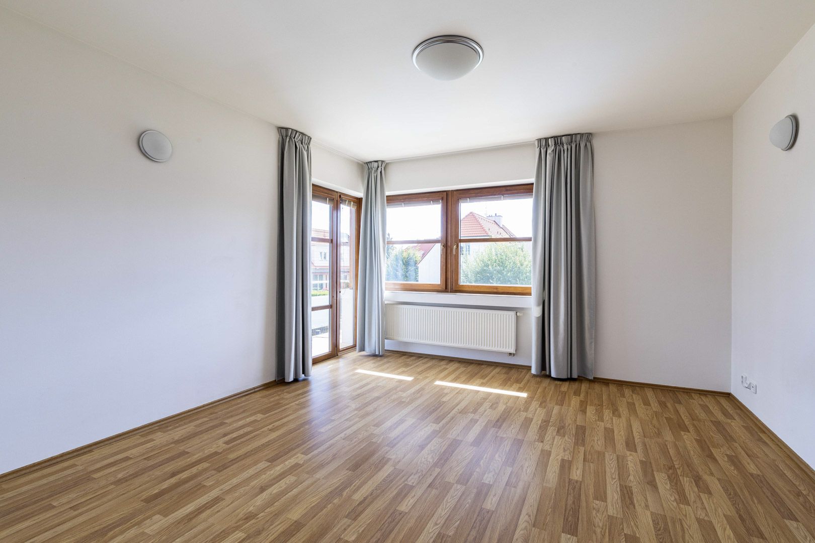 Tento světlý nezařízený dům k pronájmu dispozičně nabízí vstupní halu, obývací pokoj s krbem a samostatným kuchyňským koutem, 4 ložnice, 2 koupelny, samostatnou toaletu, pracovnu, šatnu a komoru. K domu náleží balkon, terasa a prostorná zahrada s bazénem. K domu náleží garážové stání, fotovoltaika a tepelné čerpadlo, které vám ušetří měsíční poplatky.