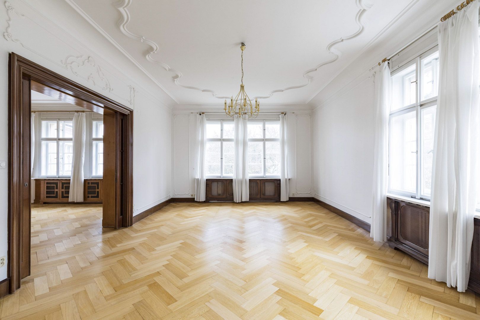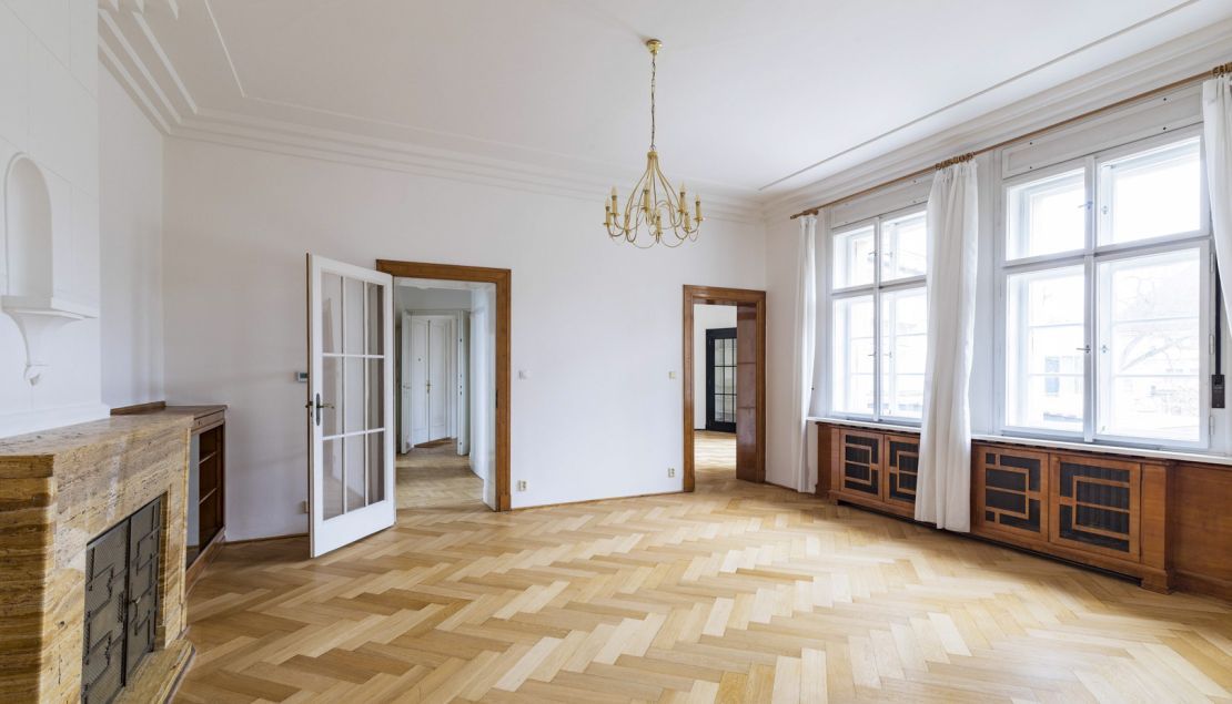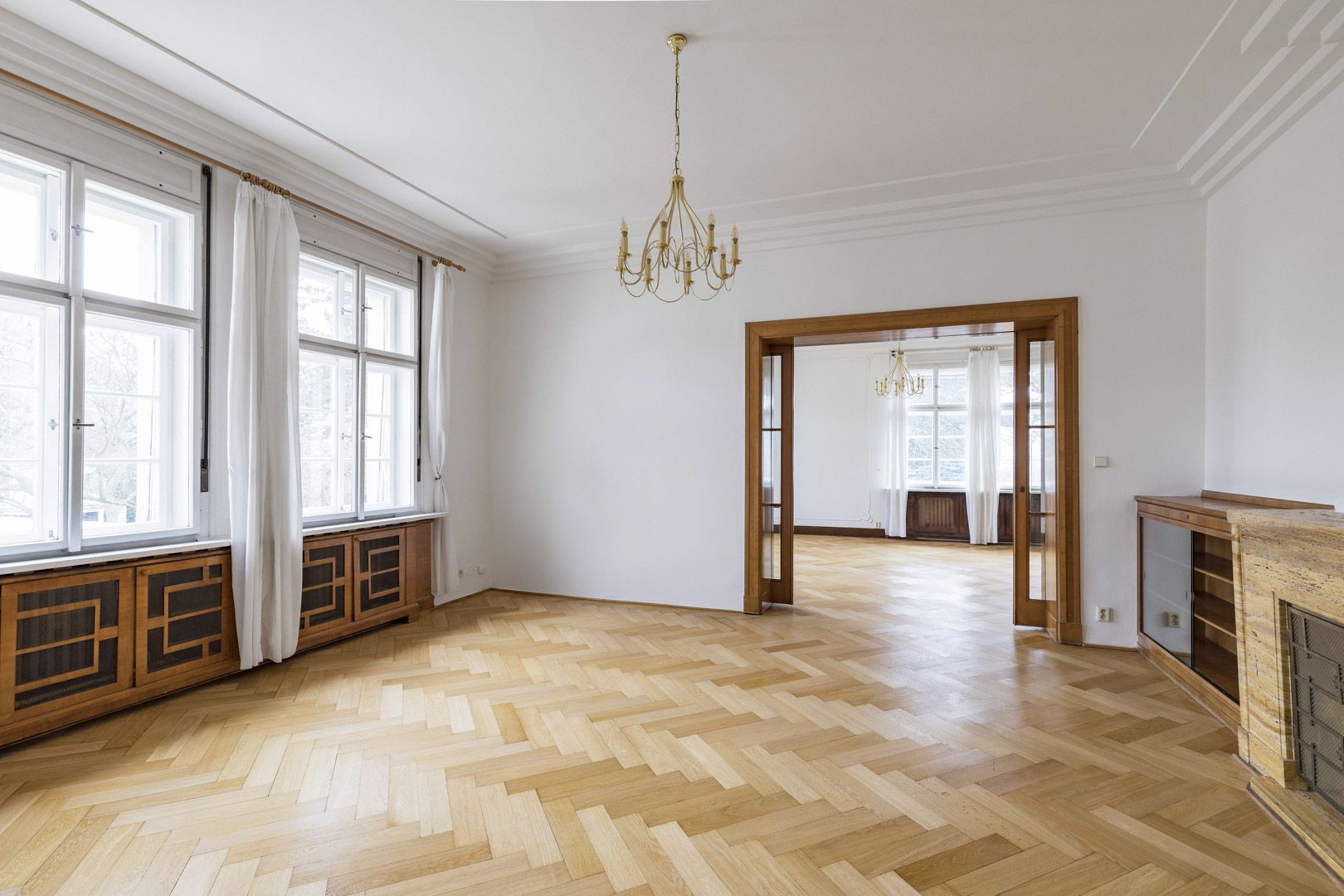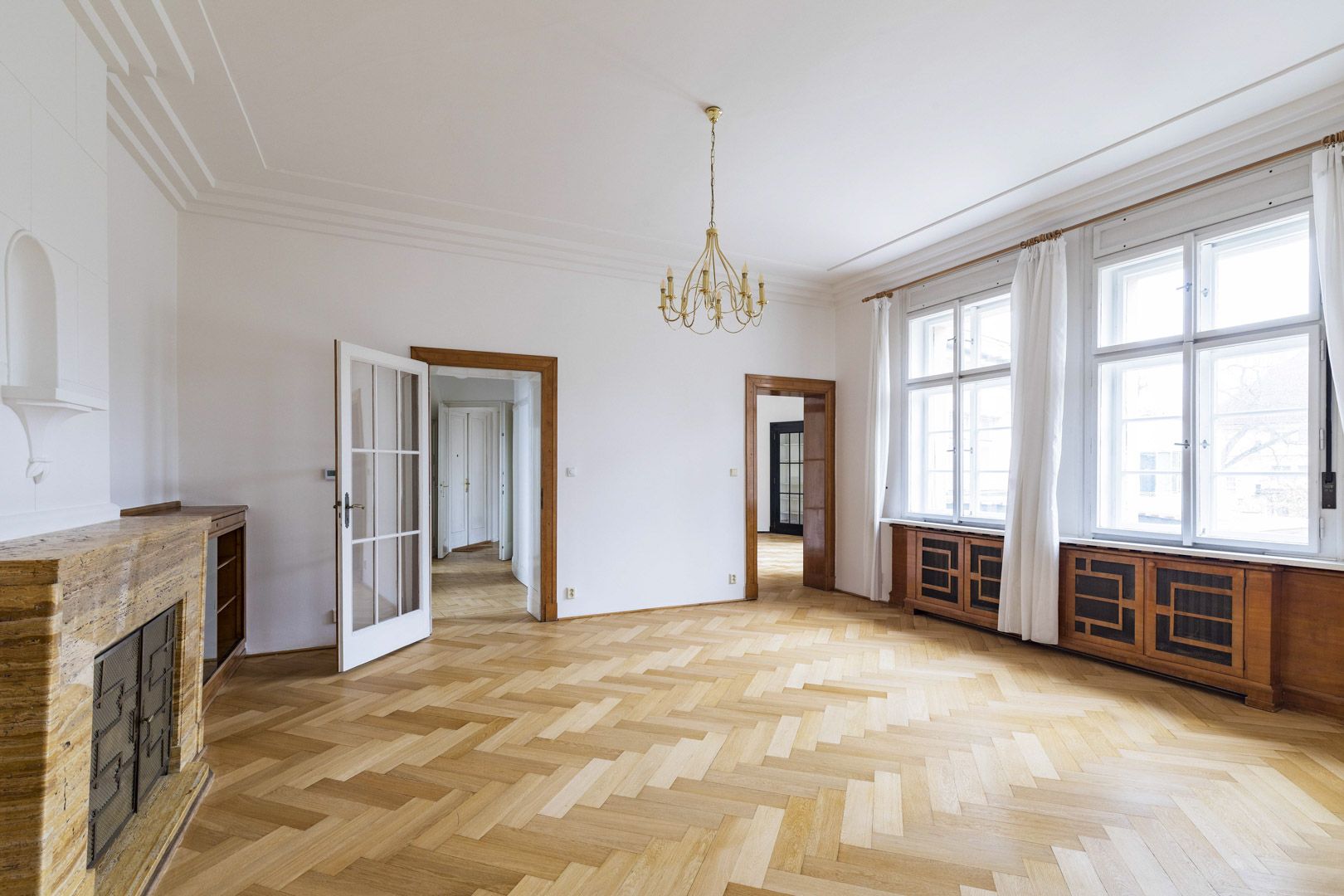 Prostorný byt 7+1 (246 m2) s terasou (26 m2) a zahradou (1000 m2), situovaný ve 2. nadzemním podlaží exkluzivní renovované vily v prestižní lokalitě Prahy 6 – Střešovice. Klidná oblast s výbornou dopravní dostupností a kompletní občanskou vybaveností.