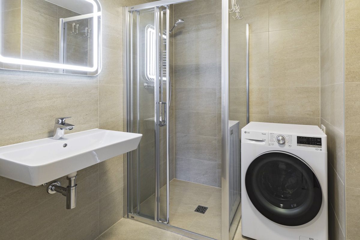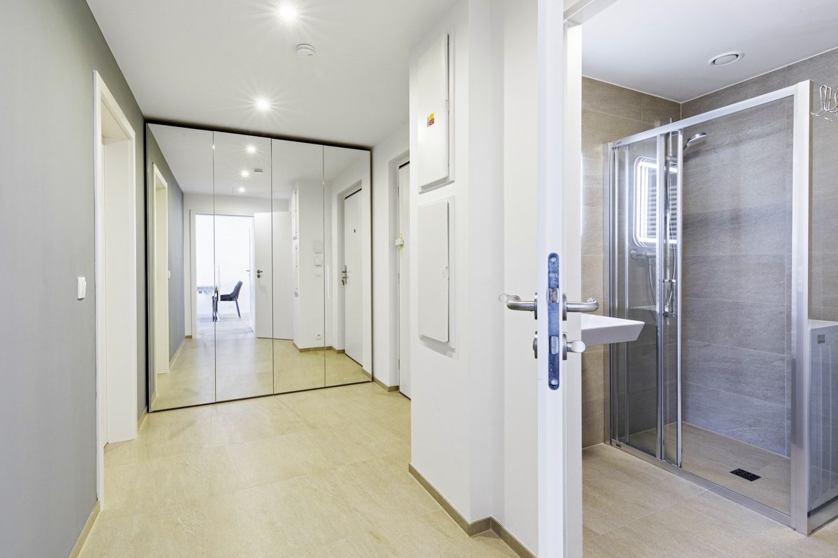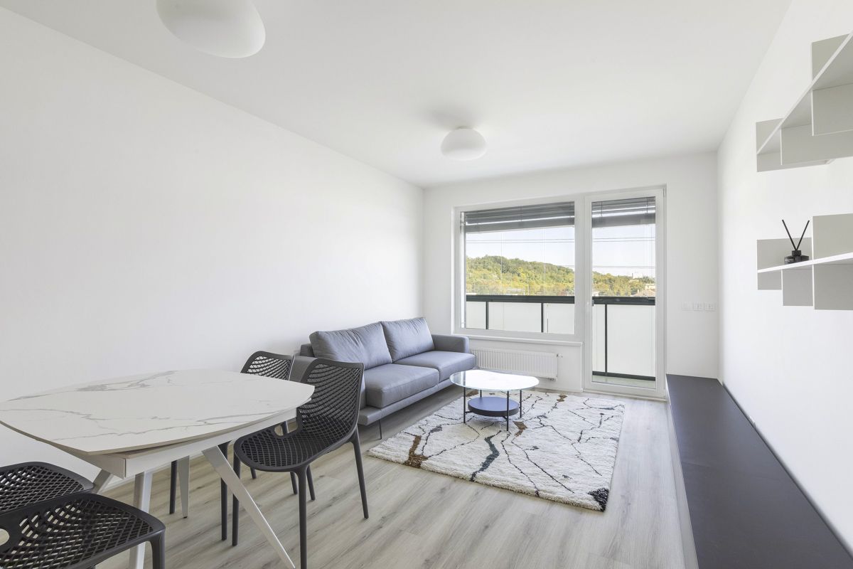 Tento světlý zařízený byt 2+kk k pronájmu nabízí k užívání vstupní chodbu, prostorný obývací pokoj, plně vybavenou kuchyni. Ložnice, koupelna (sprchový kout a toaleta). K bytu náleží prostorná lodžie, okna na celém bytě mají trojitá skla chránicí před hlukem. Celý byt spolu se zařízením je úplně nový a všechno bylo vybírané na míru s pomocí architekta. K bytu patří sklep, který se nachází na stejném patře přímo naproti výtahu a garážové stání. Součástí rezidenční budovy je místnost pro kočárky a další místnost pro mytí kol a psů.